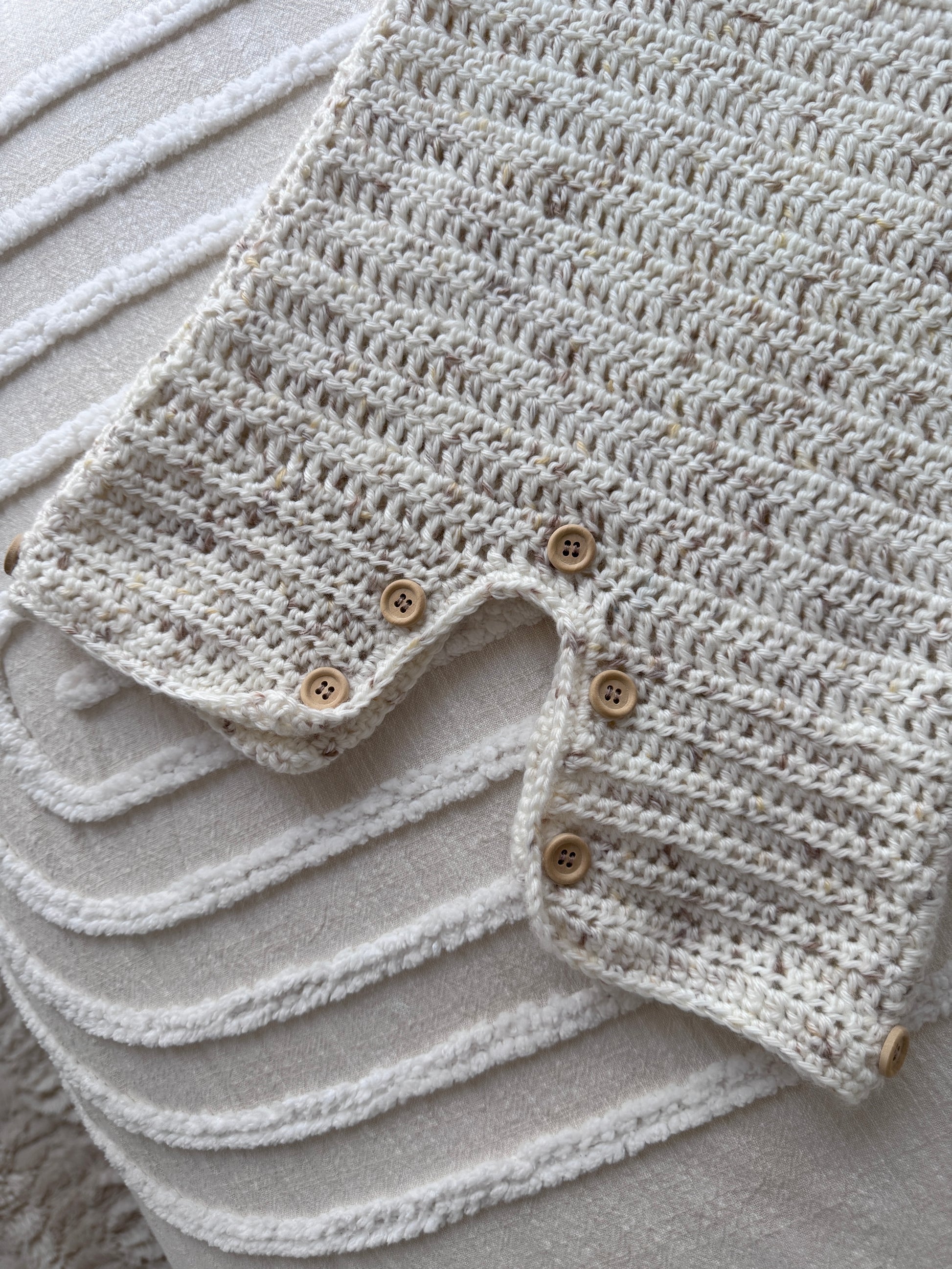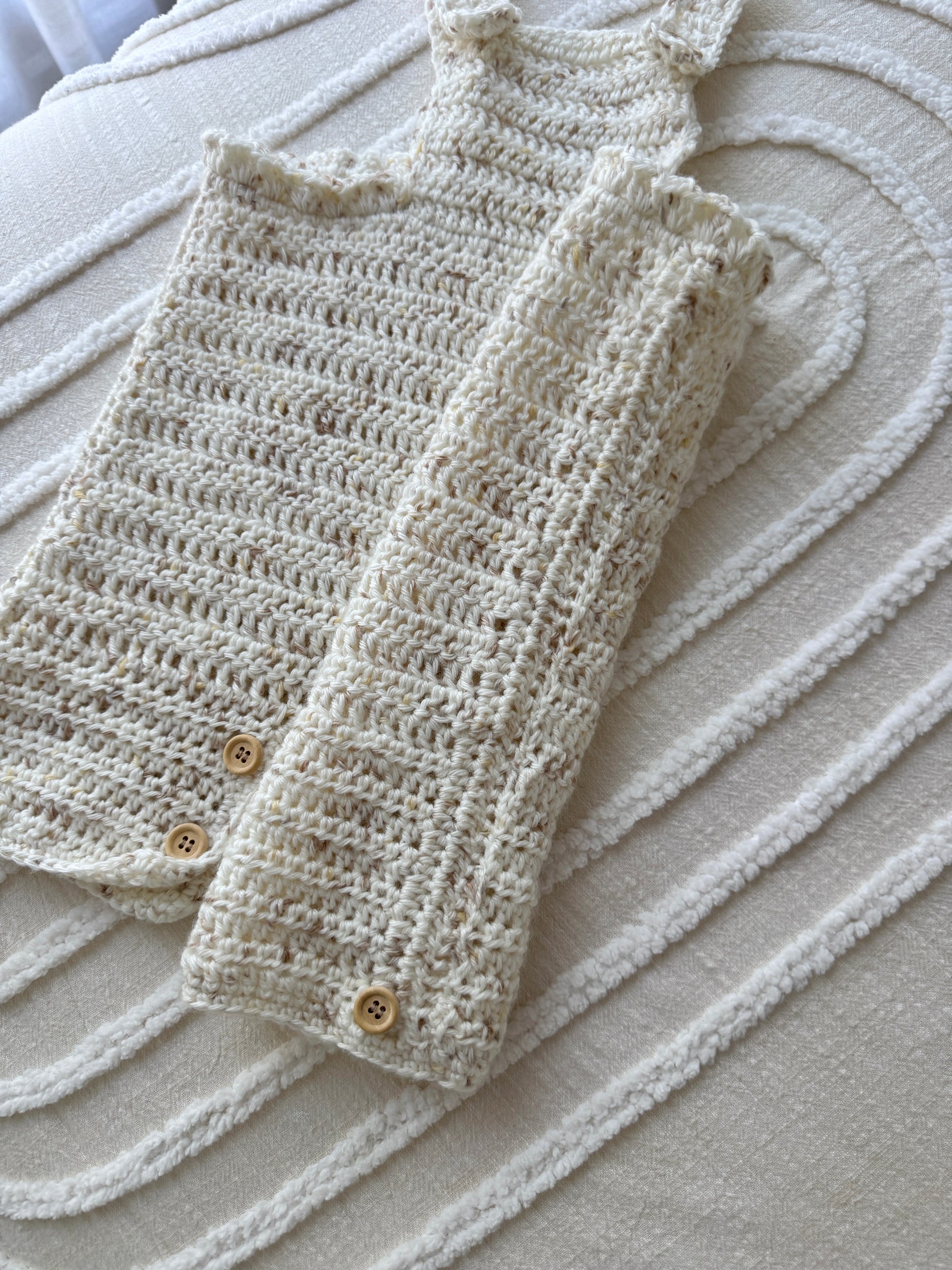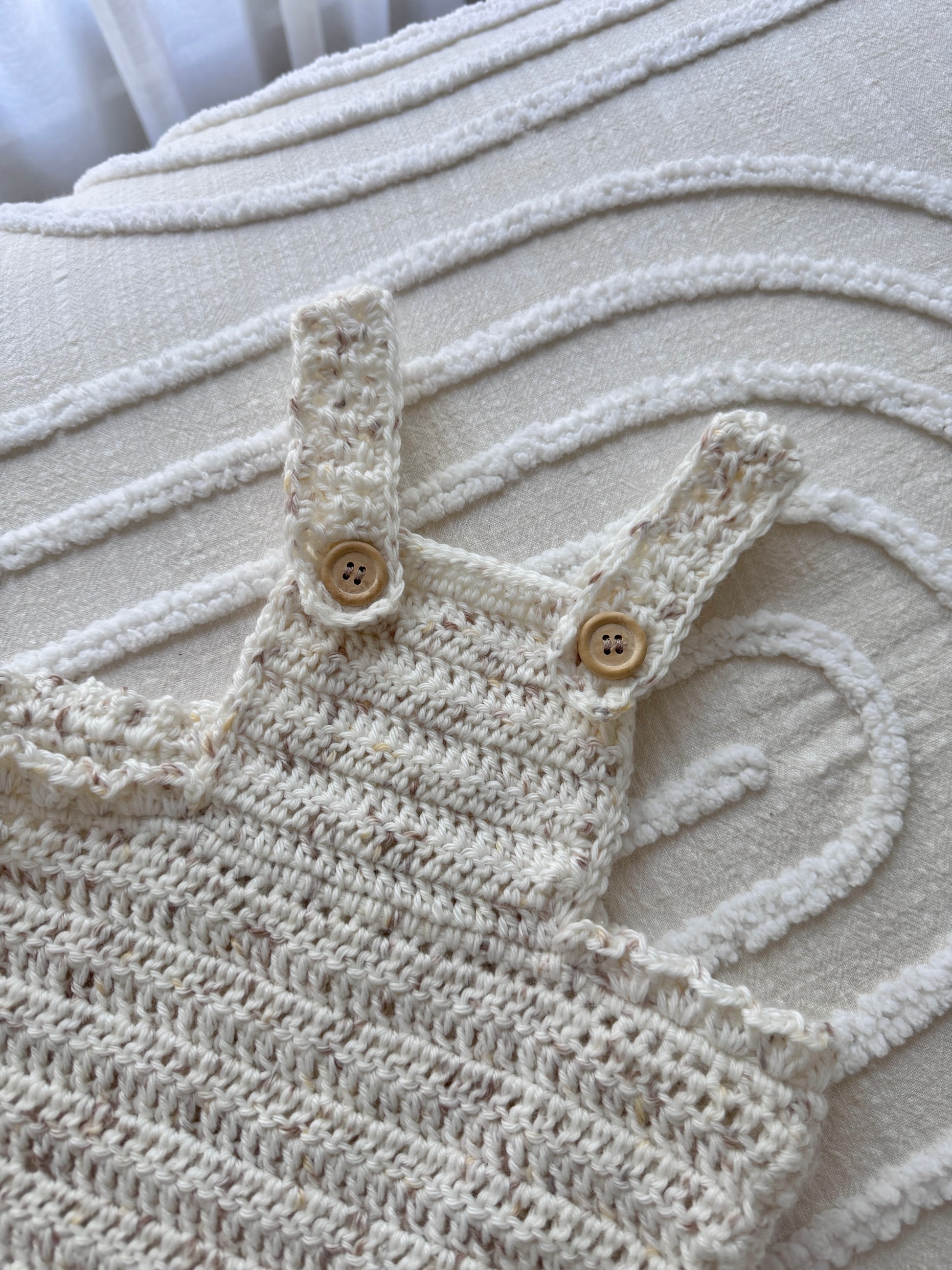 Meet Billy, the adorable crochet overalls that'll have little ones looking absolutely precious! Handcrafted from 100% soft and cozy acrylic yarn, these unisex overalls feature charming button details and convenient button closures at the legs for hassle-free nappy changes. The gorgeous neutral tone makes them perfect for any baby, whether you're dressing a boy or girl. Snuggly, stylish, and oh-so-cute—Billy is the go-to piece for cosy cuddles and Instagram-worthy moments!
